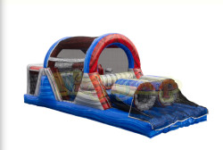 30 feet of adrenaline. This obstacle course takes participants on a journey crawling through tunnels, maneuvering around horizontal and vertical pop ups, with stamina building climbing and descending along the way !