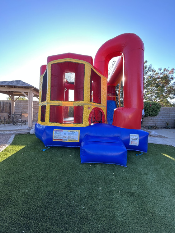 Our backyard combo is a great bounce house combined with a slide for any compact area. This backyard combo has the option to add any banner to compliment your theme.